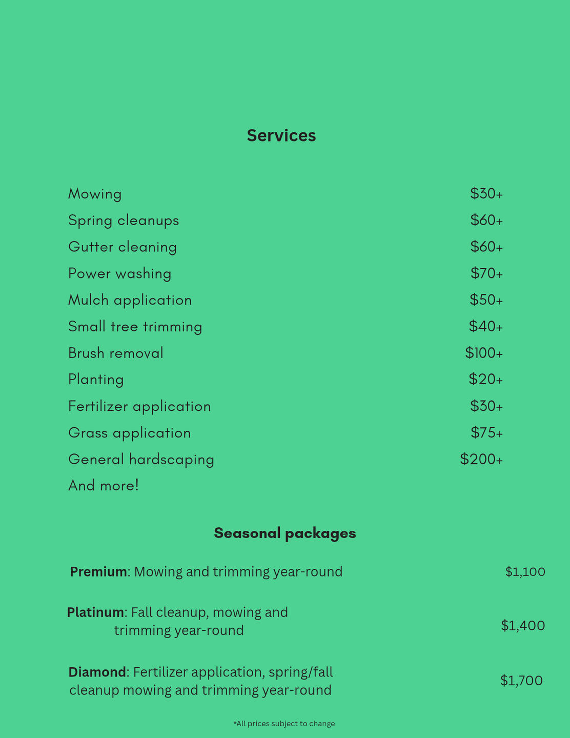 At just seven years old, I started mowing my parents' yard, and now, 11 years later, I’ve grown that passion into a thriving business serving clients across Douglas and Champaign County. I love transforming ordinary spaces into beautiful, inviting areas—whether it's a backyard perfect for gatherings or a front lawn that turns heads. There's nothing more rewarding than bringing out the full potential of a property and creating spaces people can truly enjoy.